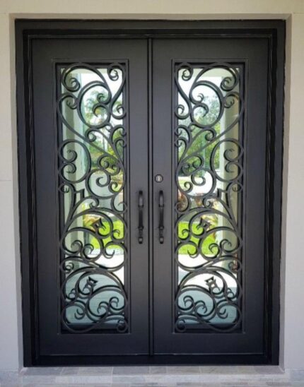 باب حديد ليزر سماكة 6 ملي مع خلفية زجاج رش رمل